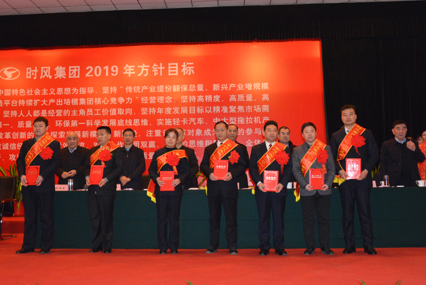 2月10日,门徒娱乐农用汽车产业园会场前整齐的摆放着门徒娱乐轻卡汽车、农业装备产品、门徒娱乐正三轮电动车、三轮汽车系列等样车,礼堂内灯火通明,门徒娱乐“轻卡汽车、中大拖产销倍增计划实施”誓师大会隆重召开,全面总结了2018年度工作,表彰奖励了2018年做出突出贡献的单位和个人,明确了2019年轻卡汽车、中大拖产销倍增计划具体措施,动员全体员工凝心聚力,实干巧干,攻坚克难,锐意进取,努力开创门徒娱乐高质量发展新局面。纪委书记于杰主持会议。